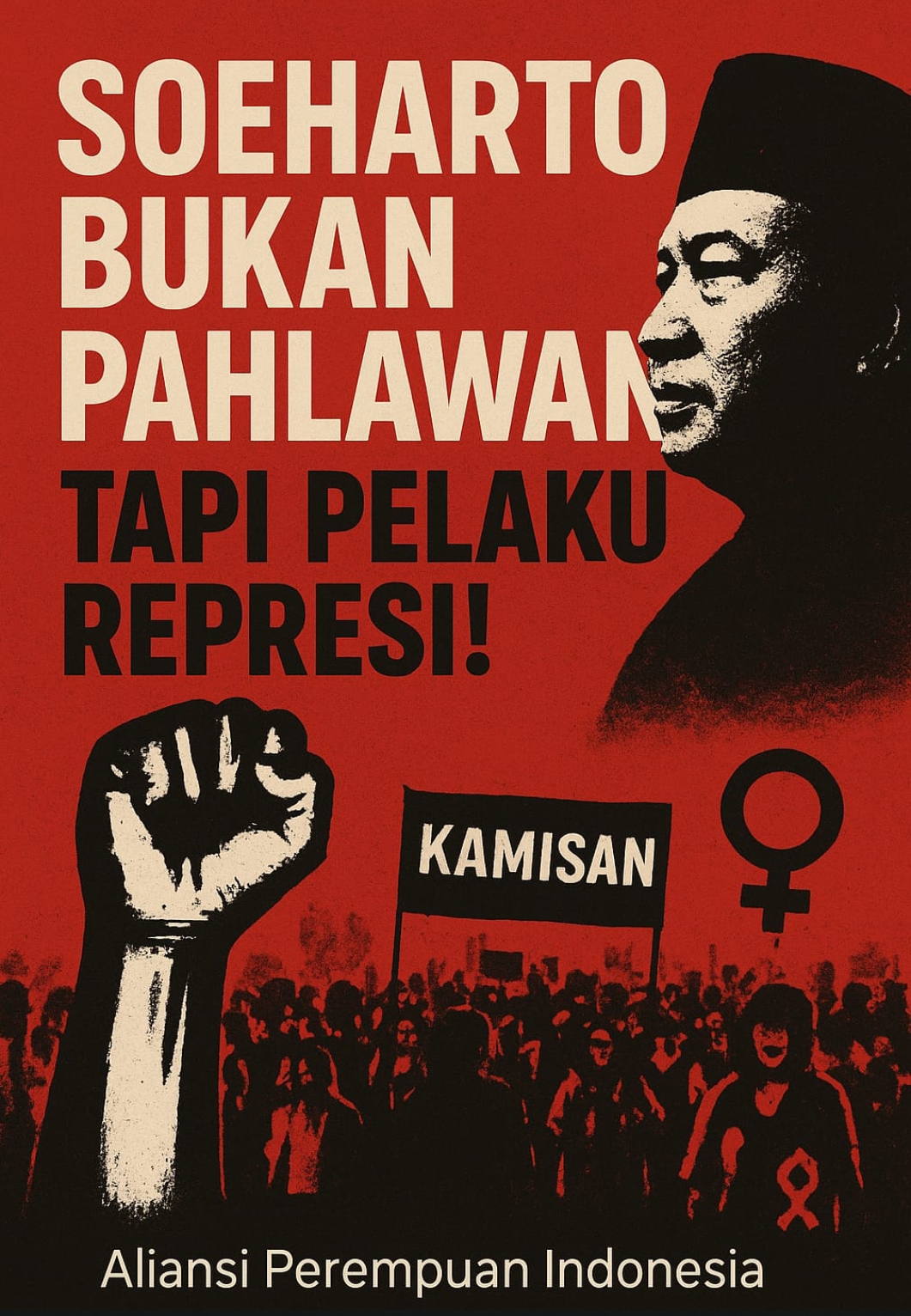Jamaninfo.com, Rilis – Jakarta, 2 November 2025 — Aliansi Perempuan Indonesia (API) dengan tegas menolak rencana pemerintah era Prabowo-Gibran untuk menjadikan Presiden kedua Republik Indonesia, Soeharto, sebagai Pahlawan Nasional. Menurut API, langkah tersebut merupakan penghinaan terhadap seluruh korban kekerasan dan pelanggaran HAM berat yang terjadi di masa Orde Baru, sekaligus bentuk pengingkaran terhadap sejarah kelam bangsa.