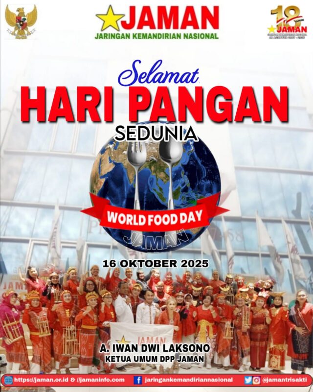 Jamaninfo.com,Jakarta, 16 Oktober 2025 – Dalam momentum peringatan Hari Pangan Sedunia 2025, Jaringan Kemandirian Nasional (JAMAN) menegaskan bahwa isu kemandirian pangan merupakan pondasi utama dalam membangun kemandirian nasional yang sejati.